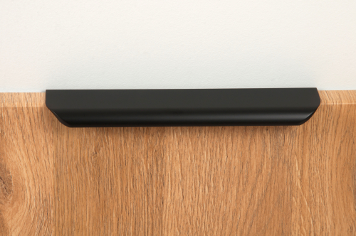 Модель крепится на фасад наложением и фиксируется при помощи саморезов. Саморезы не входят в комплект и приобретаются отдельно. Размер саморезов необходимо подобрать самостоятельно, исходя из толщины фасада, на который будет устанавливаться ручка.