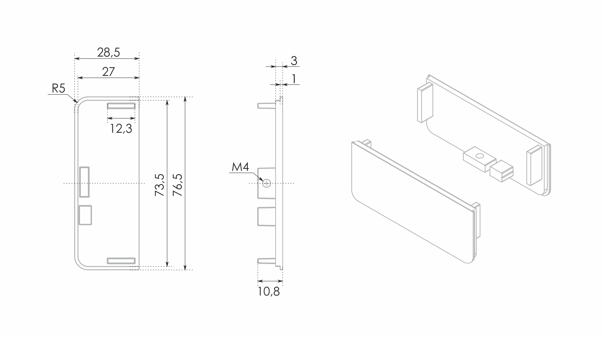 В комплект входит: левая и правая заглушки, 2 винта для крепления заглушки к профилю, ключ-шестигранник для фиксации винтов.