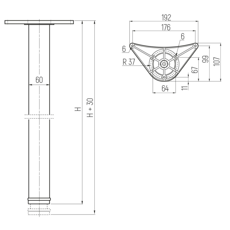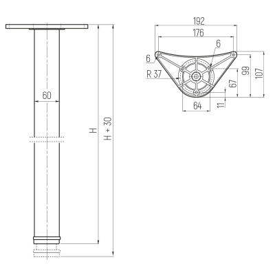 SETE Опора для стола 60*1100, матовый хром, сталь купить по цене 1 558.46 руб. в Новосибирске. Широкий выбор мебельной фурнитуры в интернет-магазине Мебельная Фабрика СИБИРЬ