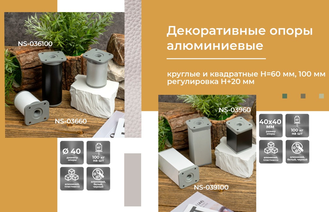 SETE Опора регулируемая круглая, d40, H=100мм, алюминий купить по цене 128.88 руб. в Новосибирске. Широкий выбор мебельной фурнитуры в интернет-магазине Мебельная Фабрика СИБИРЬ