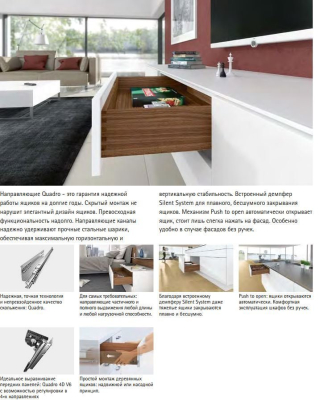 Гибкая модульная система - замена направляющих Quadro частичного выдвижения на направляющие полного выдвижения без изменений корпуса, ящика и передней панели.