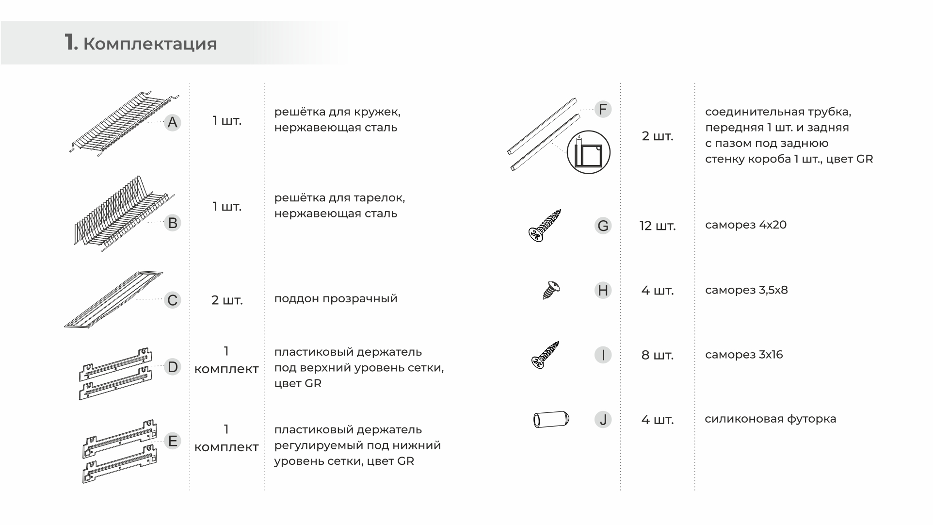 • Комплекты пластиковых держателей нижнего и верхнего уровня - 2 шт.