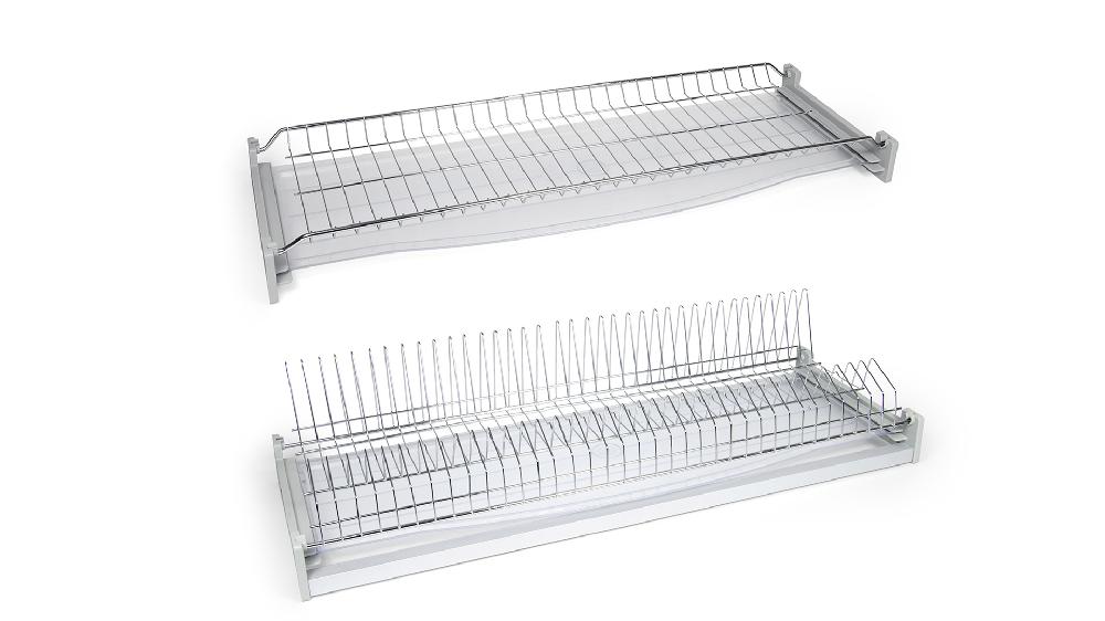 STUDIO 16 SU08 — сушка для посуды в верхнюю базу из прутковой нержавеющей стали для мебели из плит толщиной 16 мм. Модель монтируется в короб без малейших зазоров. Подходит для коробов без дна (рекомендовано) и "глухих".