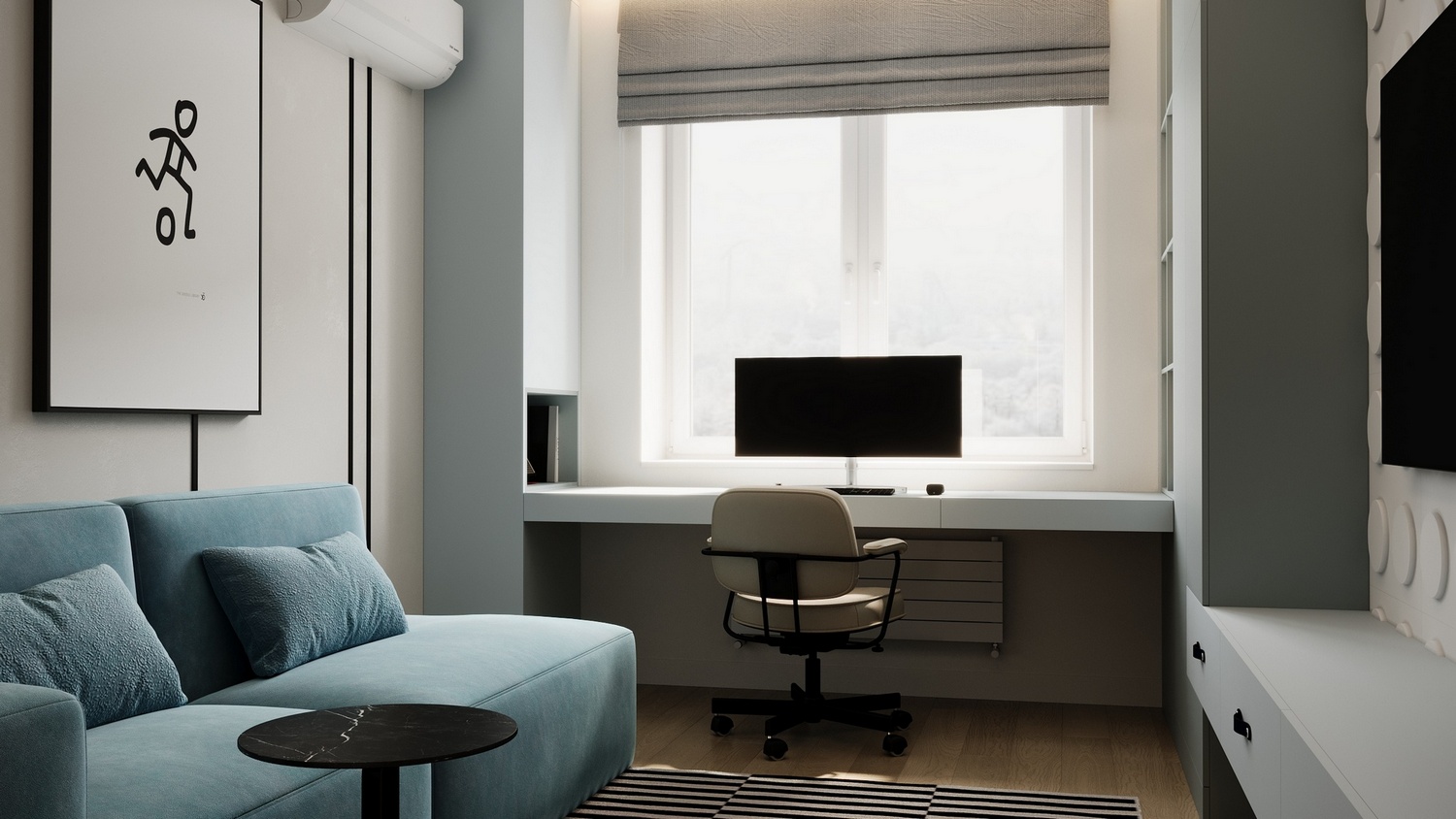 Этот цвет привносит в интерьер свежесть и лёгкость, создаёт атмосферу спокойствия и визуально расширяет пространство.