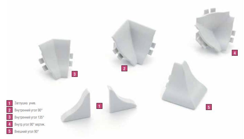 Внутренний вертикальный угол 90 к мини-бортику (уплотнитель белый-91624) 132511211007
