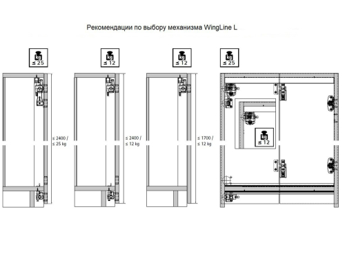 WingLine L комплект фурнитуры 12кг, без самозакрывания, L