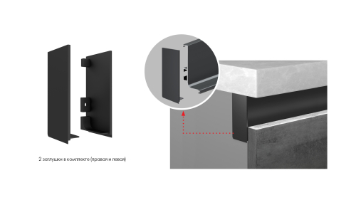 RZ051.04 - закрытые заглушки из цинк-алюминия для стильного и эстетичного оформления среза горизонтального профиля GOLA BALANCE по краям гарнитура, на стыке с посудомоечной машиной, духовым шкафом или мебельным модулем.