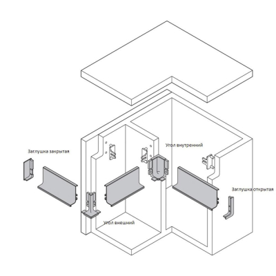 Комплект заглушек для L-образного профиля 2 шт, левая +правая, ЧЕРНЫЙ - декоративный элемент системы открывания фасадов, устанавливаемый на края ручки-профиля на финальном этапе монтажа. Корпус заглушки повторяет L-образную форму профиля, таким образом закрывая только ребро ручки.