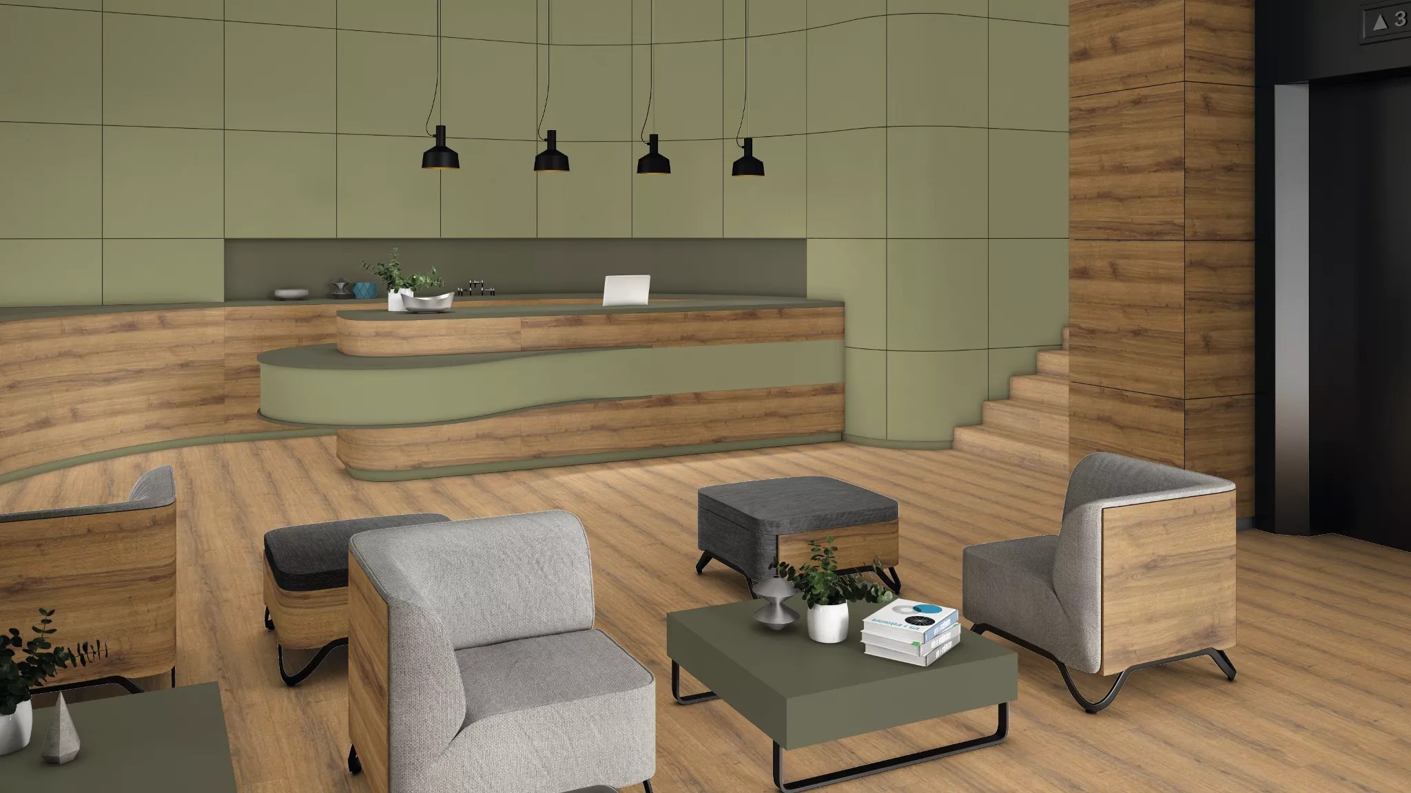 пространствах, где требуется визуальная релаксация (например, в кухнях‑гостиных) — приглушённый оливковый способствует расслаблению и комфорту.
